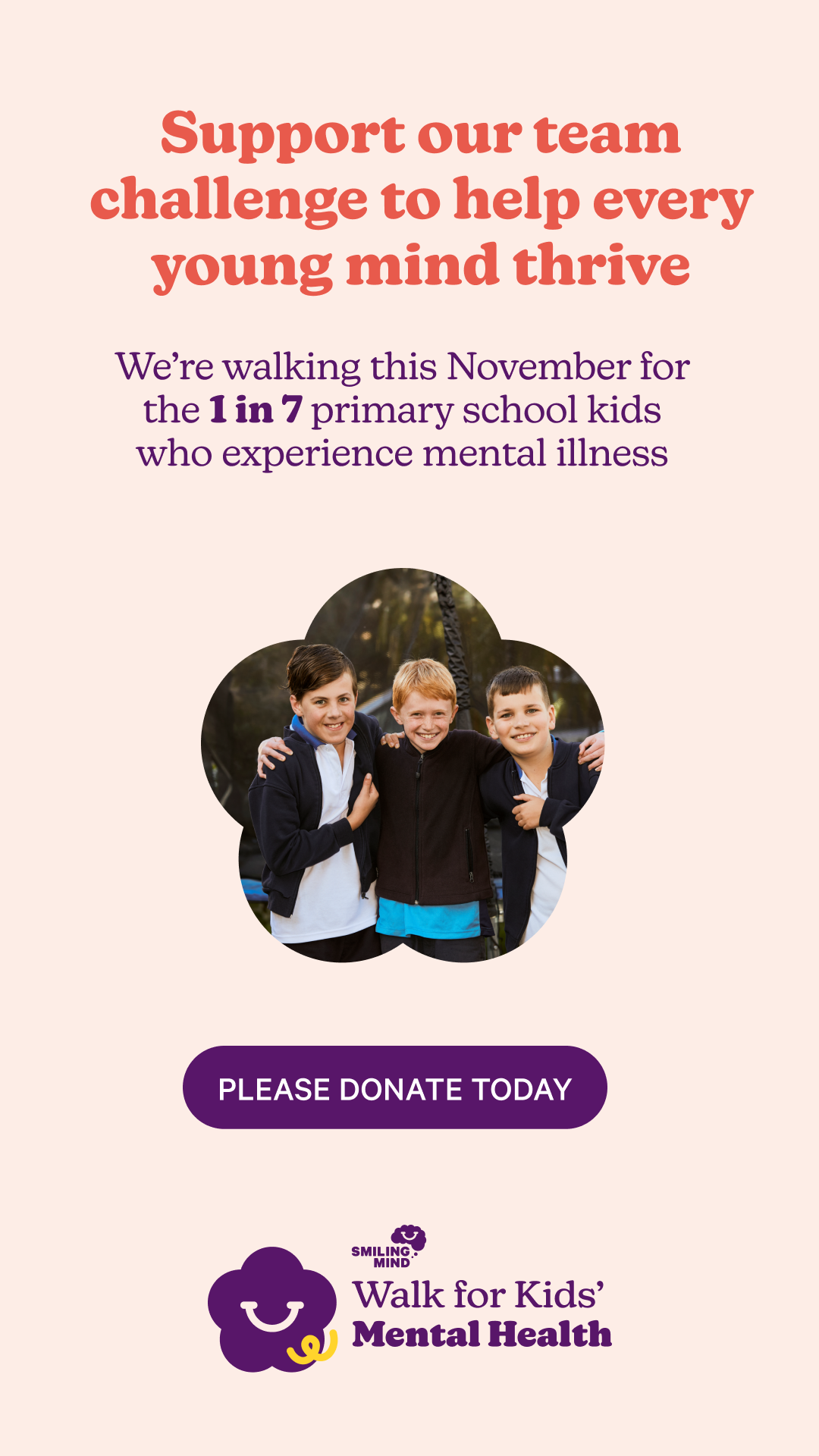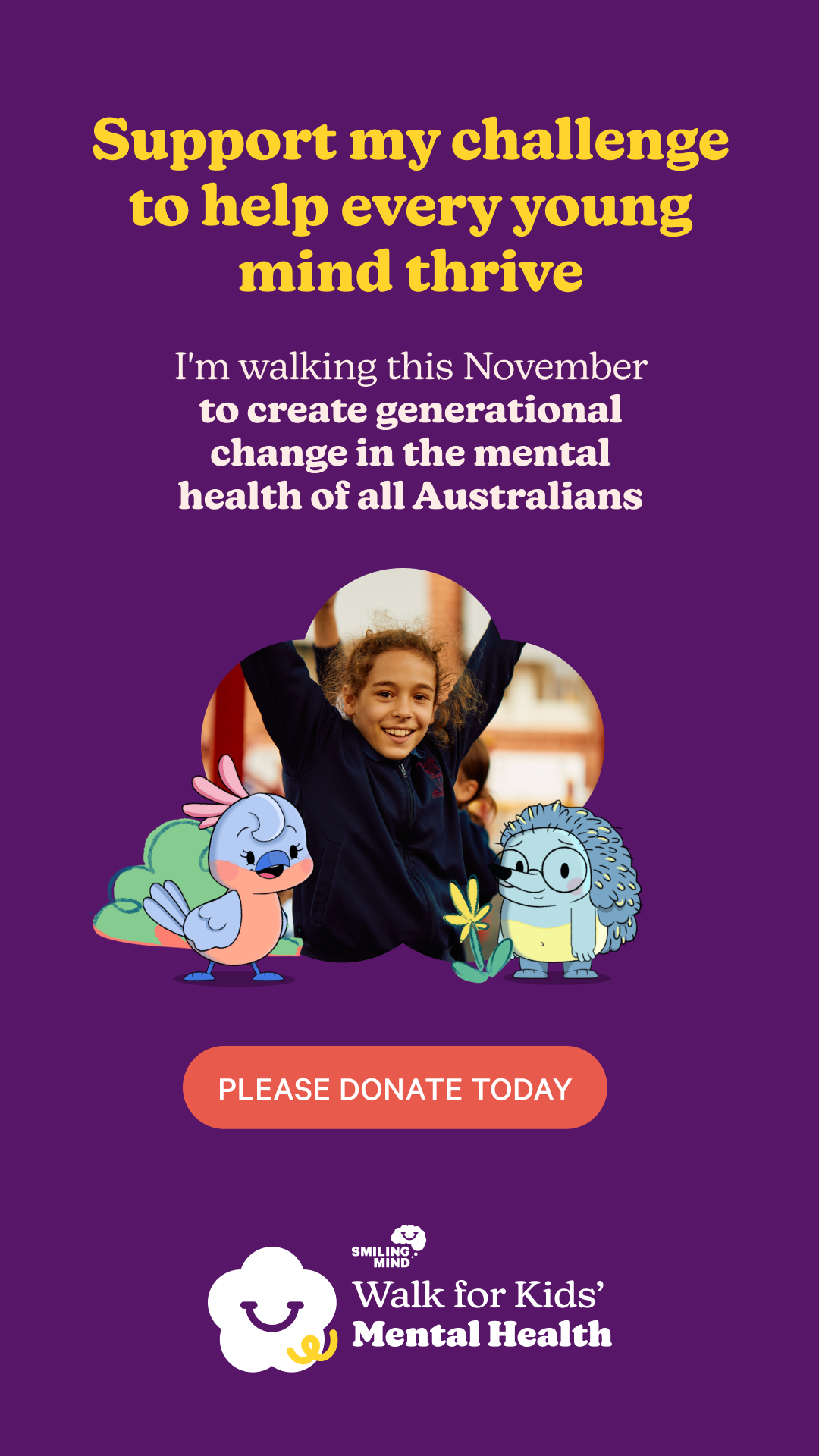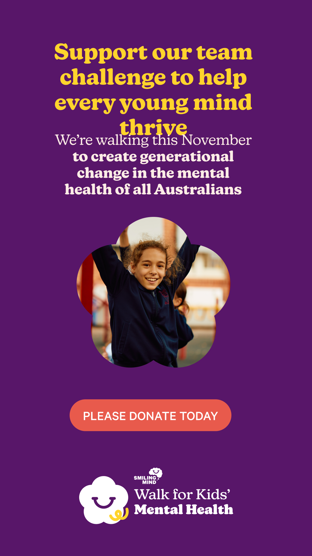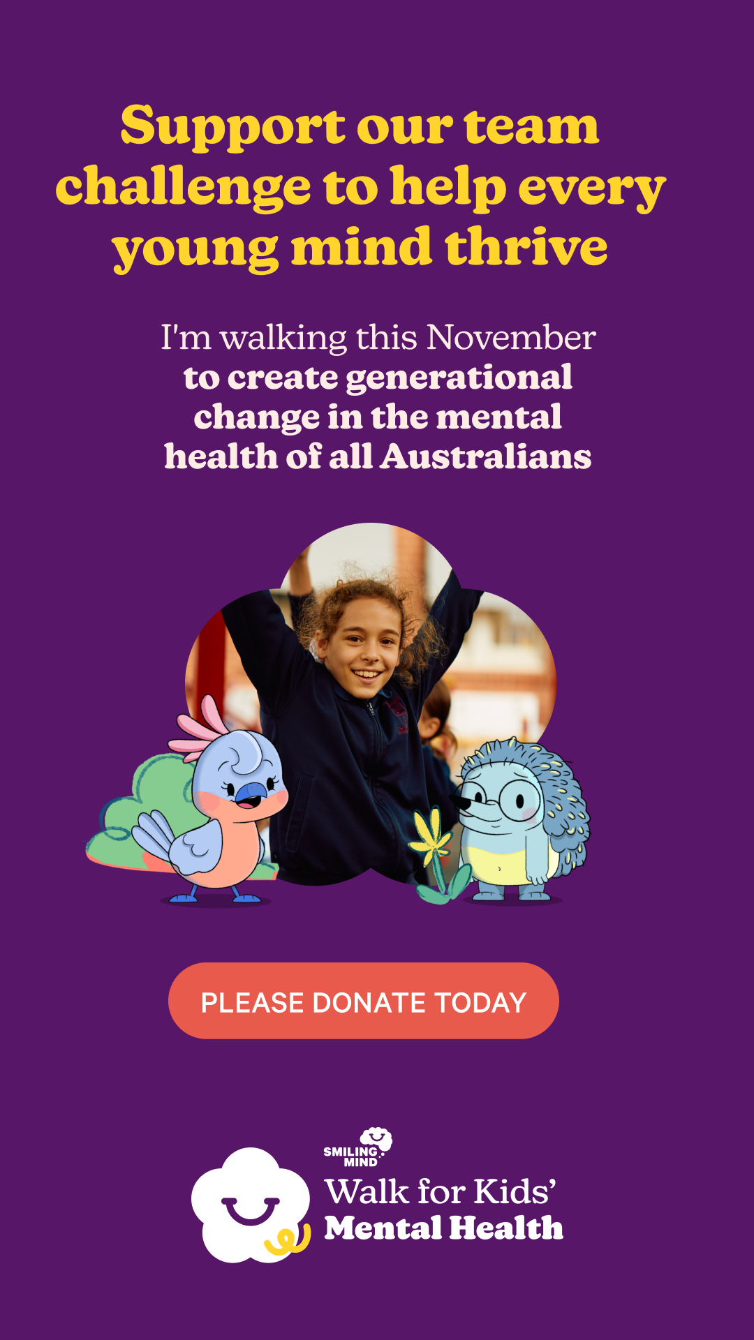 As a member of Tam’s Trailblazers raise $750 and you will help Smiling Mind provide a whole school access to resources that support mental health promotion.